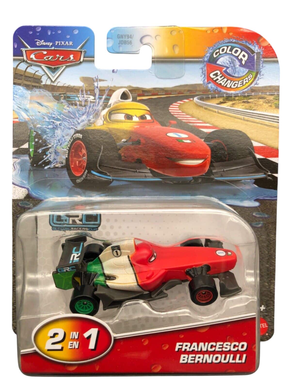 Francesco Bernoulli GRC – Color Changers disney cars bilar 2, Tillverkad av kraftig plast, men samma storlek som övriga. Ändrar färg i kontakt med kallt/varmt vatten