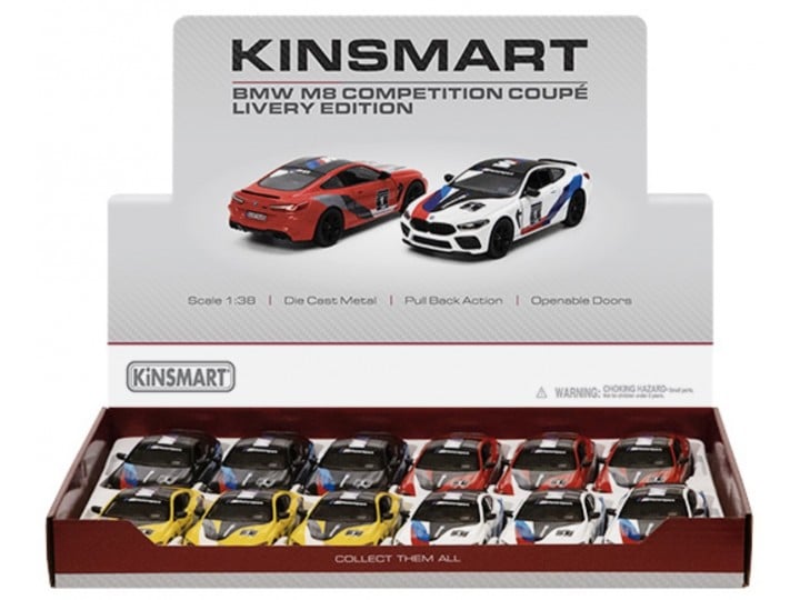 BMW M8 Competition – skala 1:38 Modellbil från Kinsmart, öppningsbara dörrar, pullback, säljs utan förpackning, se bild 1 och 2 ,