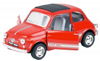 Fiat 500 – skala 1:24 Modellbil från Kinsmart , öppningsbara dörrar, pullback, säljs utan förpackning, se bild 1 och 2