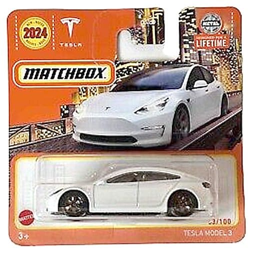 Tesla Model 3 vit – Matchbox 1:64 (short card)
