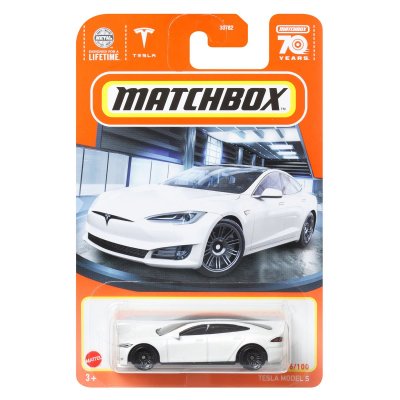 Tesla Model S vit, Leksaksbil / Samlarbil från Matchbox